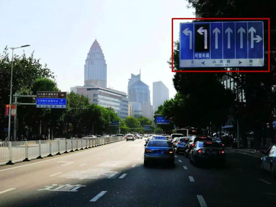 这是天津市区启用的首条“可变车道”标志在投入使用一个多月后“可变交通指示牌”也要来了!